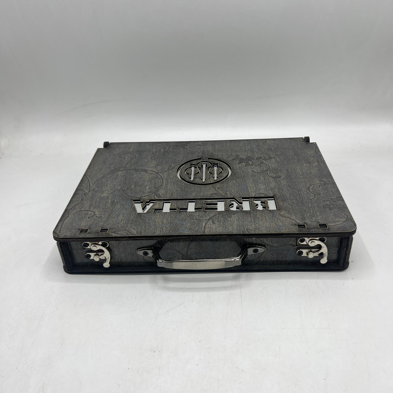 Present and protect your Beretta pistols with our Elegant Wooden Box, designed to accommodate Beretta 92 FS, Beretta M9, and Beretta M9A3 models. This high-quality wooden box offers a luxurious storage solution with dedicated compartments for one pistol, one spare magazine, and one ammo box. Crafted from premium wood, the box features a rich finish that accentuates its natural grain, exuding sophistication and class. The custom foam inserts ensure a secure fit, safeguarding your firearm and accessories from damage. Whether you're a collector or a firearms enthusiast, this wooden box combines functionality and elegance, making it an ideal choice for showcasing and preserving your Beretta pistols.